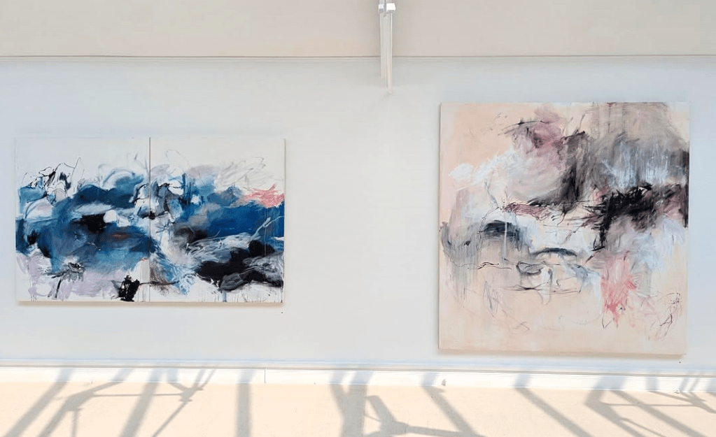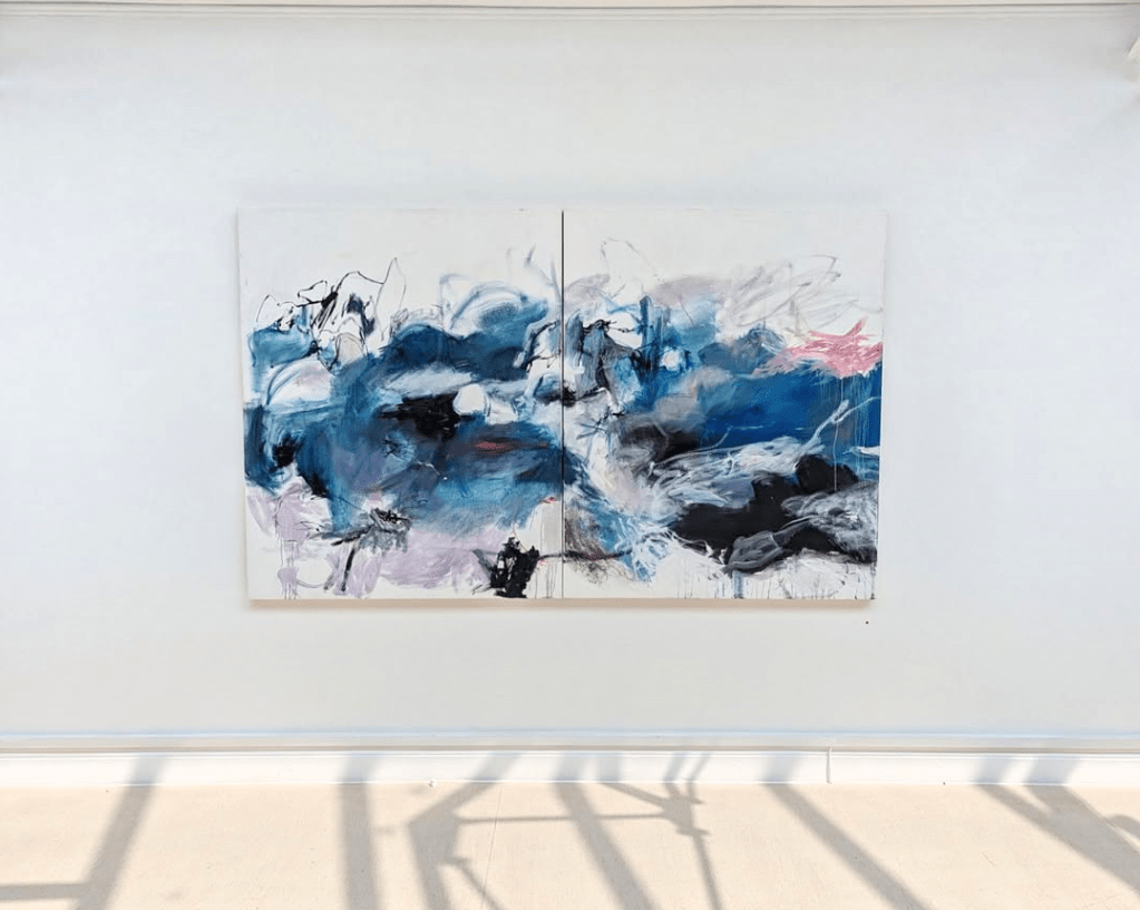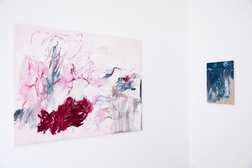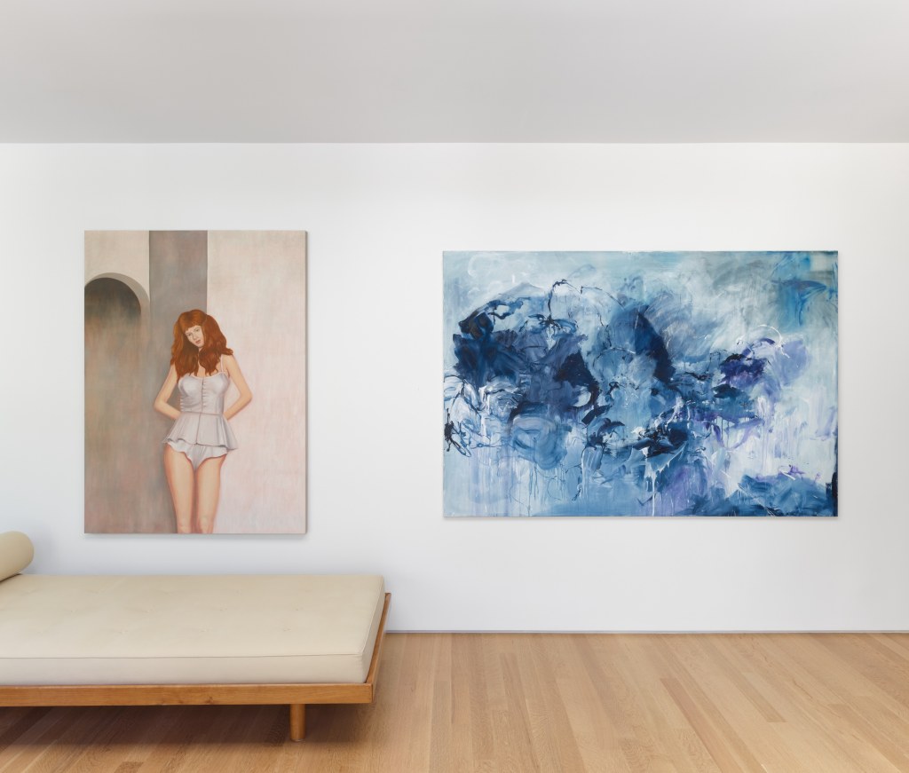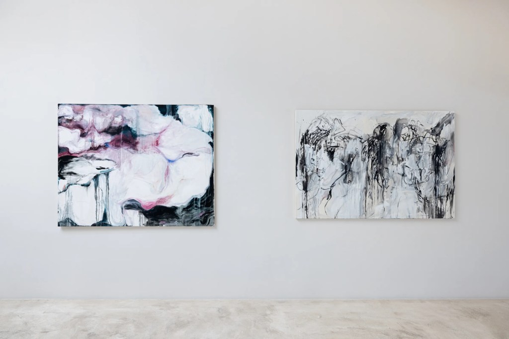 (Exhibition shot) ‘Blasted With Ecstasy, O, Woe Is Me (Ophelia‘ | ‘And I, of ladies most deject and wretched‘, 2024 | Oil on canvas | 135 x 220cm